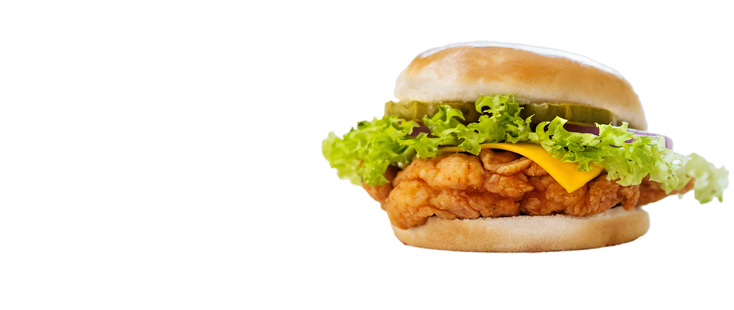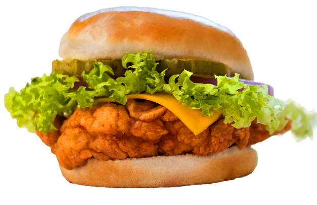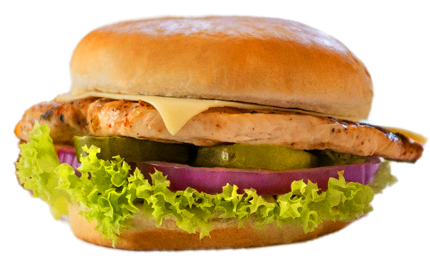 pechuga frita, queso cheddar, lechuga, cebolla, pepinillos y mayo